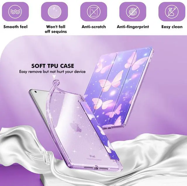 All-around Protection & Precise hole position: The applied soft TPU frame of this iPad 9 case,iPad 8 casemade it super easy to install/remove but not hurt your device. Raised Cutout for Camera & screen for better protection against accidental scratches. Prec