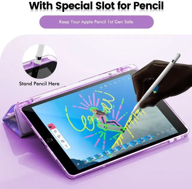 With Special Slot for Pencil: Built in Apple Pencil Holder of this iPad 10.2 inch case on the right side for safe storage all the time