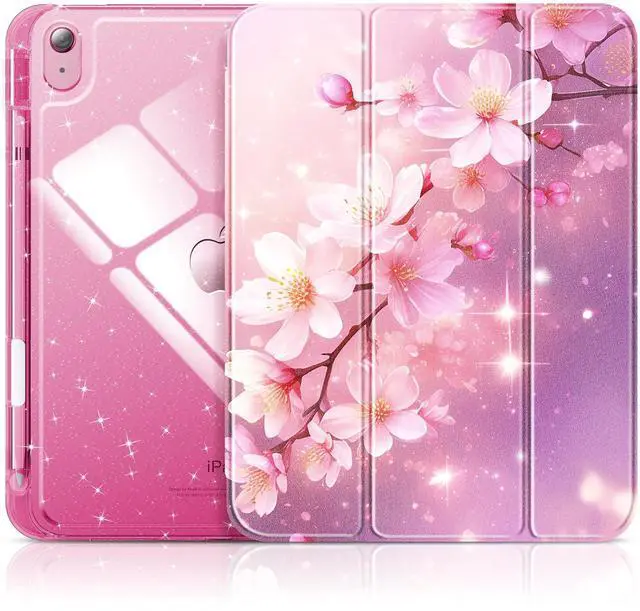 INFILAND Compatible with iPad A16 11th Generation 11 Inch 2025 Case, iPad Case 10th Generation 10.9 Inch, Glitter Cover with Sparkly Clear Back, Pencil Holder, for Kids Girls (Blossom Pink Glow)
