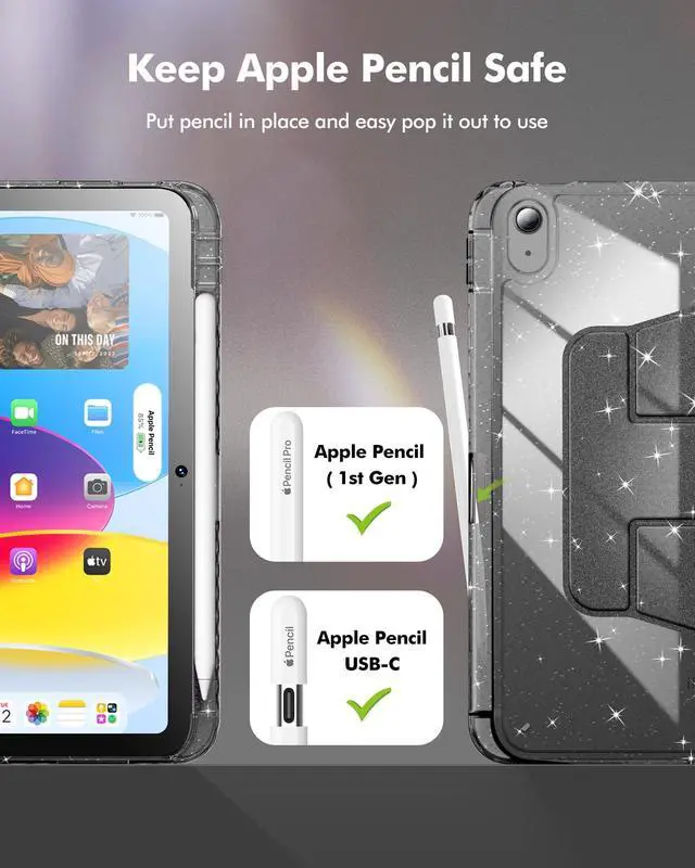 Pencil: Built in Apple Pencil Holder of this iPad 10th Generation Case on the right side for safe storage, so you will no longer worry about the pencil get lost easily. This will bring a lot of convenience for you to use the pencil anytime anywhere ^^ 360 Rotating with