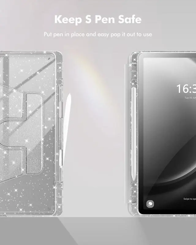 INFILAND Rotating Case for Samsung Galaxy Tab S10 FE/ S9 FE 5G 10.9 Inch/Tab S9 11 Inch 360 Cute Glitter Cover with Clear Back, S Pen Holder for Girls, Kids, Woman