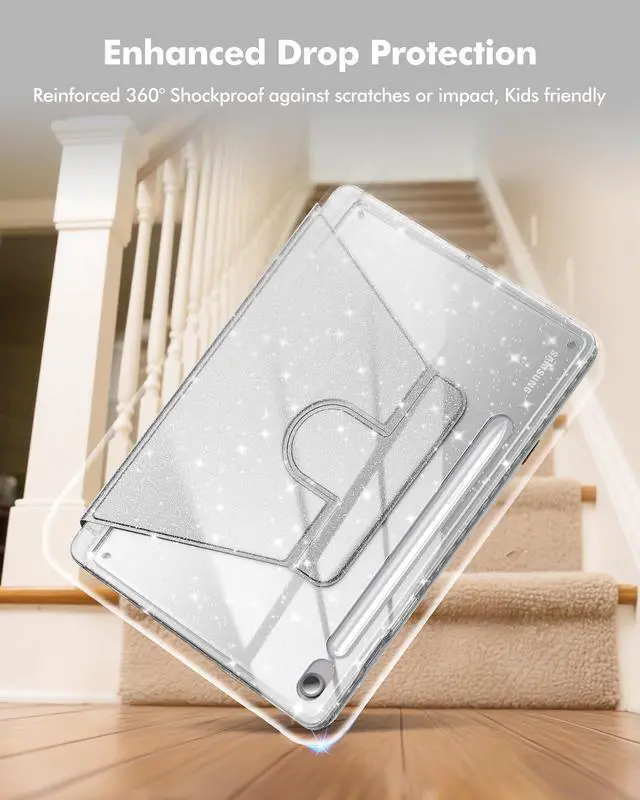 Sparkle Glitter Clear: Combine of glitter sparkly leather cover and bling crystal clear shiny back case, this Samsung Galaxy Tab S10 Lite/S10 FE 5G 10.9 inch case focus on emphasizing the beauty of your tablet while having a sense of individuality, especially for fashion girls, woman or cute kids
