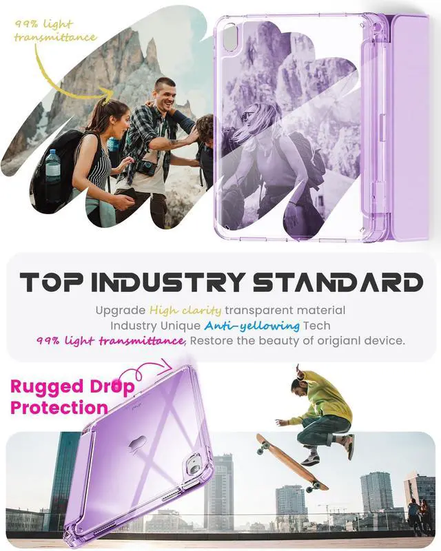 Restore True Beauty of the iPad: Applying German Bayer HD transparent material to produce this iPad a 16 clear case cover, it realizes true whole body clear from frame to back, displaying your iPad Case 10th Generation with more than 99% light transmittance from all-around and showing the Apple logo clearly