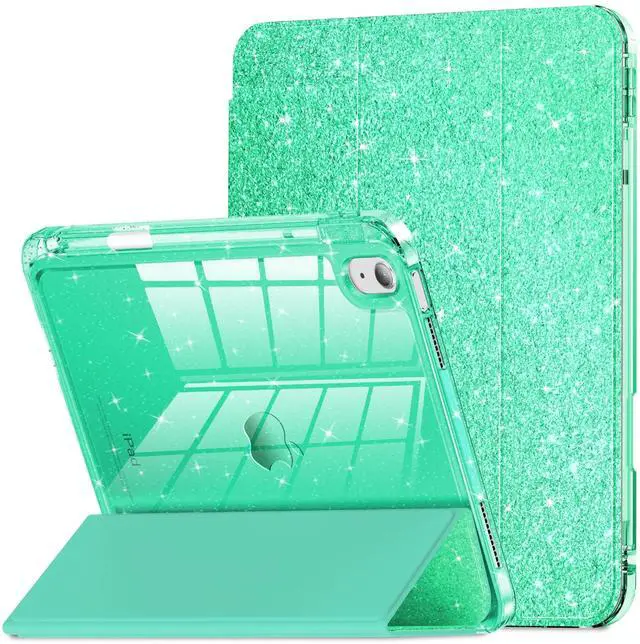 INFILAND Compatible with iPad A16 11th Generation 11 Inch 2025 Case, iPad Case 10th Generation 10.9 Inch, Glitter Cover with Sparkly Clear Back, Pencil Holder, for Kids Girls (Seafoam Green)