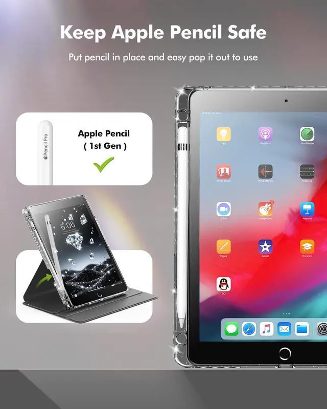 Pencil: Built in Apple Pencil Holder of this iPad 5th Generation Case on the right side for safe storage, so you will no longer worry about the pencil get lost easily. This will bring a lot of convenience for you to use the pencil anytime anywhere ^^ 360 Rotating with