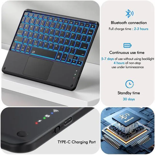 Touchpad Experience: The high-precision smart touchpad supports multi-finger gestures such as clicking, pinching, swiping and scrolling. You can precisely navigate the tablet with just a move of your fingertips, perfectly realizing the function of a mouse and enjoying a superior laptop experience. Bringing you extremely high work efficiency ^^ Backlight & Brightness &