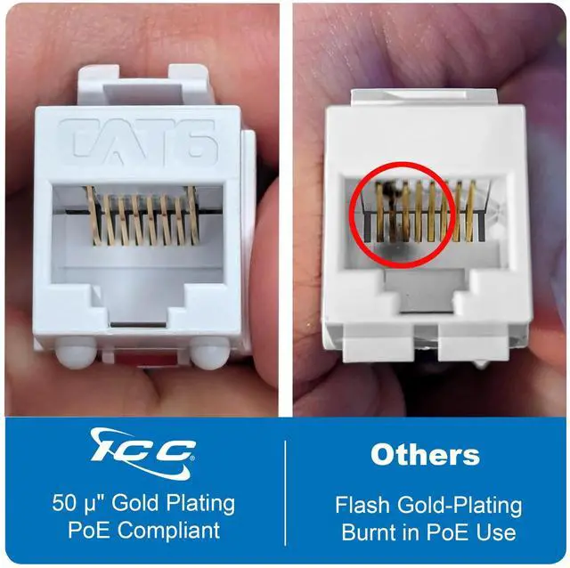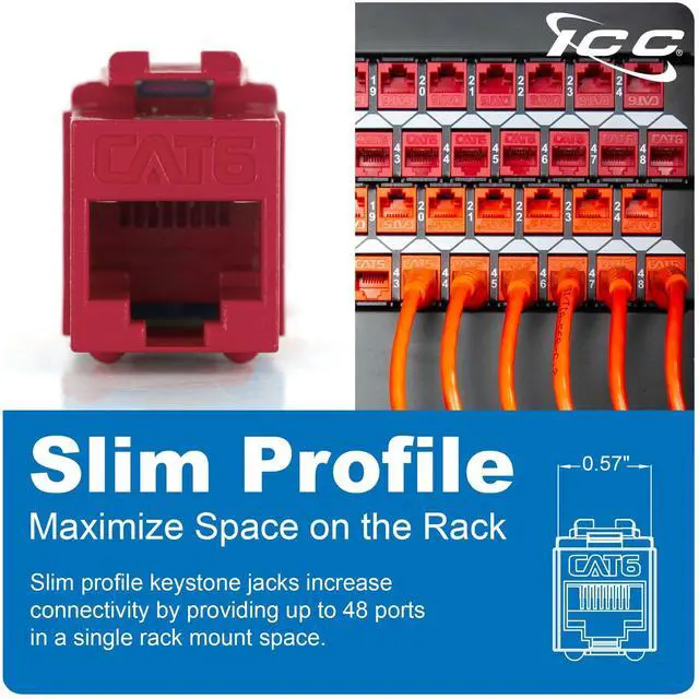 CAT6 High Density (HD) Category 6 modular jacks, RJ-45 keystone jacks, is 8-position 8-conductor (8P8C) is engineered to provide superior performance and reliability, supporting Gigabit Ethernet applications and beyond. The advanced printed circuit board design is tuned to provide optimum signal quality with maximum headroom, allowing it to exceed TIA Category 6 performance standards. It offers superior signal quality and noise reduction due to its enhanced Near-End and Far-End Crosstalk cancellation and minimum return losses. The Category 6 HD design offers a smaller rear footprint maximizing space in confined work areas.