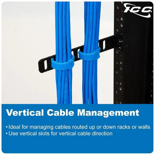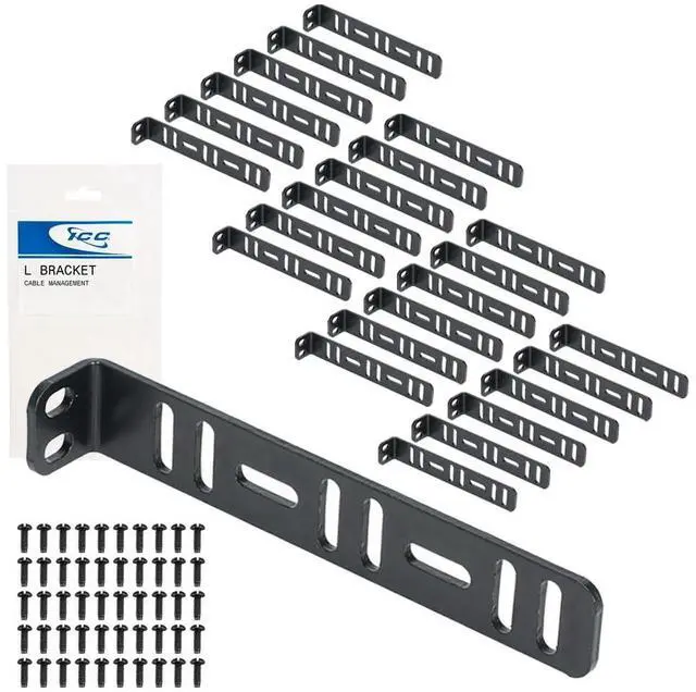 ICC's new L Bracket cable management panel is designed to mount to any standard EIA-compliant hole spacing for custom vertical and horizontal cable management and includes #12-24 mounting screws. Features Designed to mount to any standard EIA compliant hole spacing. For custom vertical and horizontal cable management. Designed to fit all racks, wall mount brackets, and cabinets. Used with distribution and cable management racks. Comes in 25 pack.