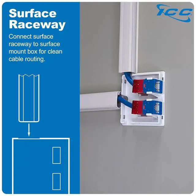 CERTIFIED: ICC Surface Mount Boxes meet U. S. government regulations, including TAA and Section 889. Made from high-quality ABS plastic for long-lasting performance and impact resistance. Manufactured in approved countries, with UL Listing (UL# E125268) and RoHS Compliance. UL 1863 compliant for safety, ensuring adherence to the highest standards.