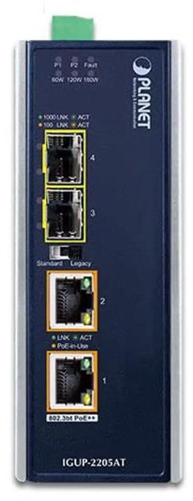 IGUP-2205AT Industrial 2-Port 100/1000X SFP to 2-Port 10/100/1000T 802.3bt PoE++ Media Converter