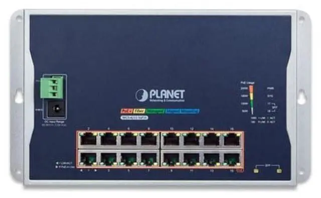 WGS-4215-16P2S - 16 Ports 10/100/1000T 802.3 at PoE + 2 Ports 100/1000X SFP Industrial Managed Switch, Wall-mounted (Planet Thenology)