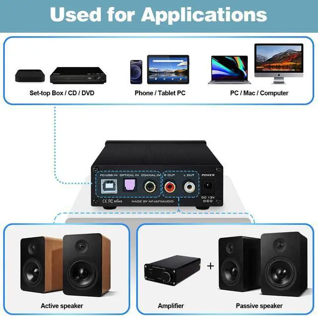 Unique Design: Compact and adaptable, connect to active speakers via RCA to improve sound quality, or for use as a powerful headphone amp.NOTICE:DAC-X6 volume adjustment only works on headphones. Headphone and RCA output will emit sound at the same time when the DAC-X6 is working. You can turn off your active speakers or amplifiers according to your needs