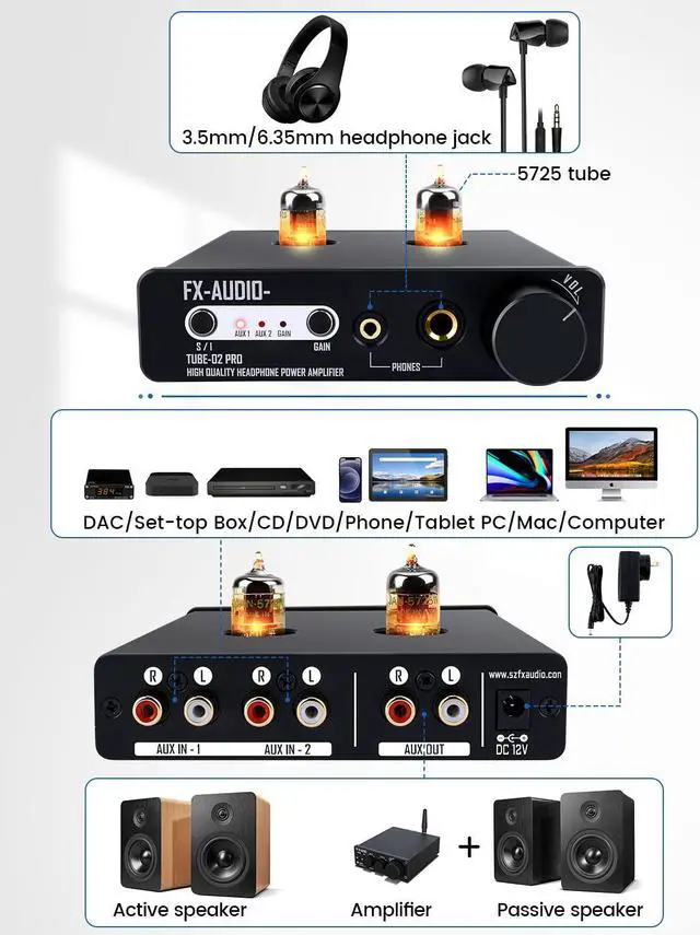 FX Audio DAC-X6 USB DAC AMP Combo and Tube 02 Pro 5725 Tube Pre-amp