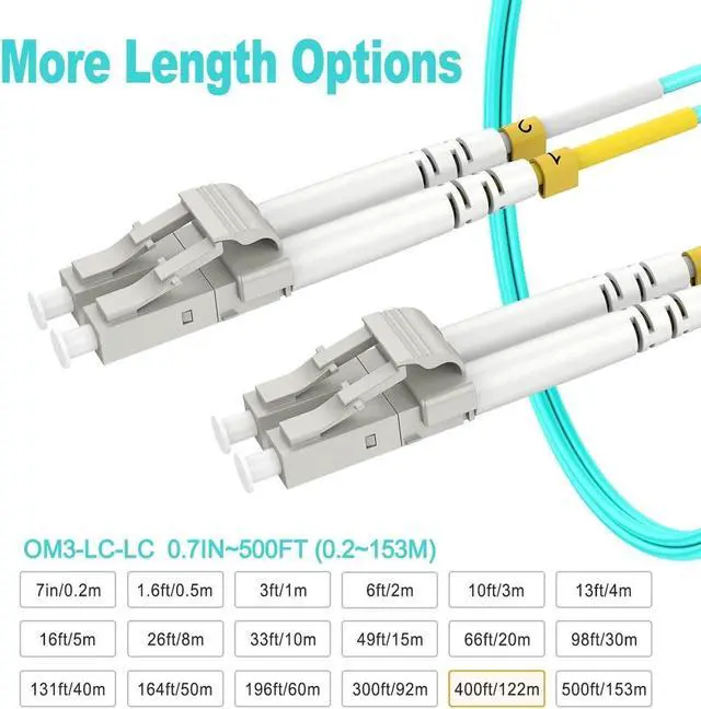 LC to LC 122m/400ft OM3 Fiber Patch Cable Multimode Duplex - 50/125mm Fiber Optic Patch Cords - 10G MMF LSZH 850/1300nm, Length