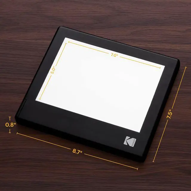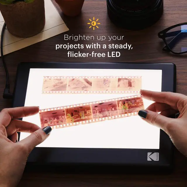 VIEW YOUR OLD SLIDES, FILMS & NEGATIVES ^^ Step Back in Time with the KODAK LED Light Box! This Multipurpose Light Panel Provides Ultra Bright, Even, Consistent Illumination for Viewing & Digitizing Old Films, Slides & Other Transparencies ^^ Simply Place Negatives on Top of Board & Use Your Smartphone or DSLR Camera to Scan ^^ 98% ACCURATE COLOR RESTORATION ^^ While Inferior Models Only Reach 92%-95% Accuracy, Our Professional-Quality LED Light Board Achieves Rich, Brilliant, True-to-Life Color & Original Image Replica Up to 98% ^^ High-End Photographic Light Source & Diffusion Acrylic Help Distribute Light Evenly, Eliminating Glare & Hot Spots ^^ IDEAL FOR STUDIO OR REMOTE WORK ^^ Lightweight, Compact, Portable Design Enables Flexibility at Home or On-the-Go with [2]