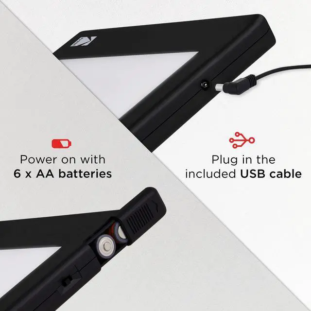 Power Options: Use the Included USB Cable for Continuous Power or Battery Operation for Wireless Off-Grid Use [Requires 6 AAA Batteries] ^^ Stores Easily in Drawer, Camera Bag or Backpack ^^ PERFECT CLARITY FOR ARTISTS & TATTOOISTS ^^ High-Performance Light Panel Delivers Flicker-Free Intensity & Beautiful Color Reproduction, Making it a Great Choice for Sketching, Illustration, 2D Animation, Architect & Engineer Drawings, Calligraphy & Other Work Requiring Tracing ^^ Also Use as Artificial Light Source for Photography ^^ A MEANINGFUL GIFT THAT GIVES & GIVES ^^ Surprise Mom, Dad, Grandparents & Loved Ones with a Trip Down Memory Lane! This Easy-to-Use Lightbox Requires No Complicated Scanners, Additional Apps, or Pricy Conversion Services ^^ Place Big Batches of Film from Your Collection Onto the Pad Surface to View at Same Time