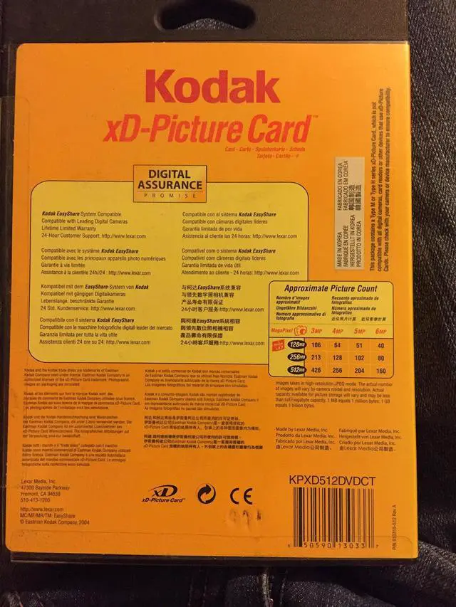 Type H 512 MB xD card. NO PACKAGING INCLUDED. A reusable digital media that works with most manufacturers' xD-compatible devices. Meets the memory capacity needs of today, and readily available to fulfill the increased memory capacity needs of tomorrow. Designed for maximum durability. An exceptionally compact design--about the size of a postage stamp.
