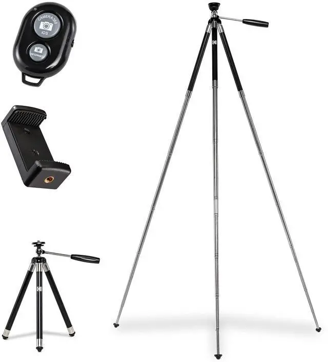 TRIPOD WITH SMARTPHONE REMOTE ^^ 42 Adjustable 8-Section Tripod System Provides Ultimate Flexibility for Shooting Landscapes, Portraits, Selfies, Groups Shots & More ^^ Handheld Bluetooth Remote Allows You to Capture Images From a DistanceWhile Eliminating Shutter-shock & Enhancing Image Sharpness ^^ HIGH-QUALITY CONSTRUCTION ^^ Aluminum & Stainless Steel Are Super Strong & Durable, Yet Lightweight & Compact Enough for Travel ^^ Folds Down to 11 for Convenient Storage ^^ Rubberized Feet Ensure Dependable Stability on Concrete, Gravel & Other Rocky Surfaces & Terrain ^^ 360 SWIVELING BALL HEAD ^^ Smooth-Moving Platform Supports Tilting & Panning at Various Angles On Horizontal & Vertical Planes ^^ Enjoy Full Range of MovementPerfect for Changing Direction to Hone Compositions ^^ Includes Mounting Screw & Smartphone Adapter ^^ 1.1 Lb.