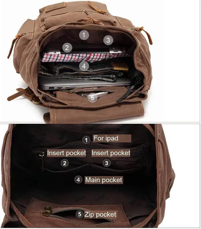 MULTIPURPOSE: A great camping rucksack for Hiking, camping, traveling, shopping, outdoor activities, or take it to work. High density canvas backpack, rucksack, vintage backapck for man, woman Age rating: