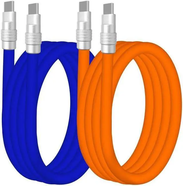 chubbycable Couple Chubby - 2-Pack 240W USB C Cable Extra Thick Silicone Fast Charging Cable for iPhone 15 16 Series, iPad, MacBook and More, Dark Blue+Orange, Type-C to Type-C, 8.2FT
