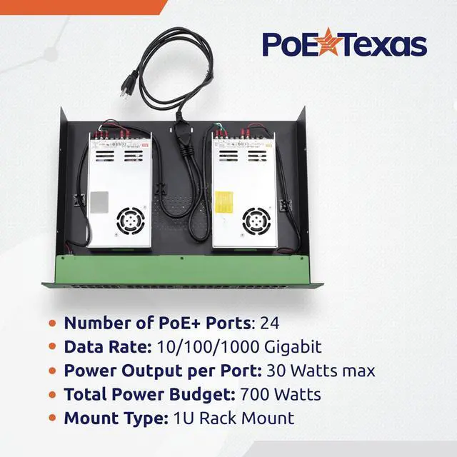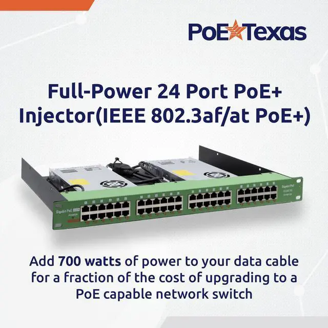 PoE Texas 24 Multi Port IEEE 802.3 at PoE+ Injector - Full Power On Every Port - 700W Total - 10/100/1000 Gigabit Data Rate - Active Injector for WiFi Access Points, PTZ Cameras