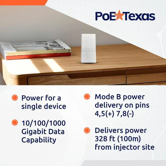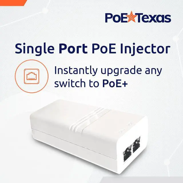 AT-1-52v30w: Instantly upgrade your current network switch to PoE+. This PoE+ injector extends 52v Power over Ethernet up to 328 feet via ethernet cable. A passive PoE injector always delivers the same voltage as its power source. Power a USB-C tablet, IP security camera, VoIP desktop phone, WiFi access point, or other low voltage 802.3 af device through a network data cable using this IEEE 802.3 at compliant Power over Ethernet adapter / single port injector. This PoE injector 52v integrated unit delivers 52 volts, 30 watts of active PoE power with auto detection for devices labeled 802.3 at. Expand your network to areas with no power lines or outlets. Plug and play. Our single port PoE adapter transmits 10/100/1000 Gigabit data, delivering lightning fast wired speeds with no loss of signal quality via one Data In port and one Data + Power Out port.