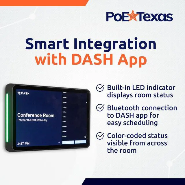 Instant Room Status: See room availability instantly with the smart LED indicator - connects to DASH app via Bluetooth for real-time scheduling updates. ^^ Custom-Fit Wall Mount for iPad 10th