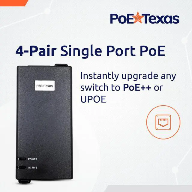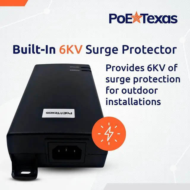 Use this PoE injector to upgrade your PoE network with the flexibility and features of IEEE 802.3 bt (60 watts of power per line) for a small group of devices, without the expense and hassle of installing a new PoE switch. ^^ Get IEEE 802.3 bt power at a fraction of the cost. Dual Signature Active PoE means security and provides a 55 volt, 60 watt output. Power over Ethernet injector delivers 4-pair PoE++ with active negotiation to prevent accidental overpowering. ^^ This Power over Ethernet adapter features 6KV surge protection for outdoor devices.