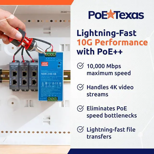 Performance: Use this PoE++ injector to upgrade your network infrastructure with blazing-fast 10 Gigabit speeds, supporting 10/100/1000/10000 Mbps data transmission to handle today's high-bandwidth applications and tomorrow's growing data needs. ^^ Retrofits Existing Networks with