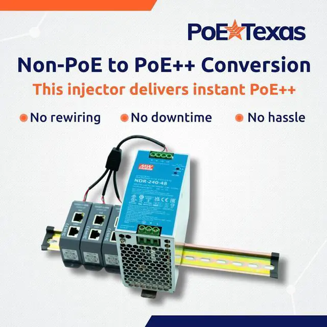 PoE++ Power: This midspan injector allows you to turn any standard ethernet port into a high-powered PoE++ port without replacing your expensive switches, so you can leverage your existing network equipment while adding advanced power delivery capabilities. ^^ 90W Output for