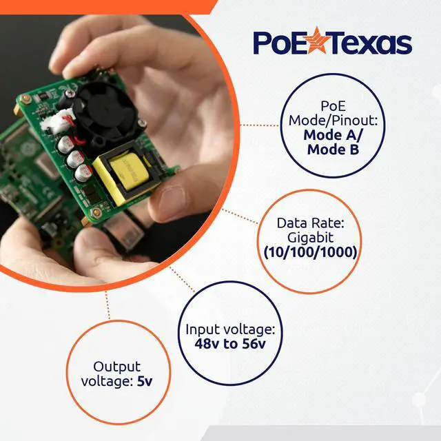 Extra layer of protection: optocouple isolation with flyback topology to prevent shorting the board, especially for media applications. Provides a regulated 5 volts with solder pads on top for a DC bus. Increases efficiency above 90% for DC to DC conversion. ^^ All of our PoE products are backed by a 1-Year replacement warranty and a 30-Day, no questions asked, return policy. Expert help is only a phone call away. Please call 512 479 0317 for assistance.