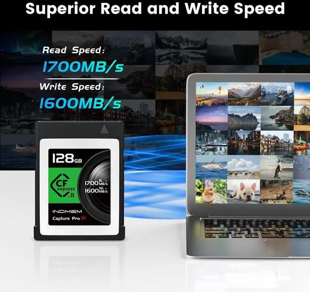 Ultra Read& Write Speed- -Superior performance with transfer speeds of up to 1700MB/s read, 1600MB/s write. ^^ 8K Smooth RAW Videos- -Optimized for Continues 8K RAW Recording to shoot more high quality image. ^^ Select XQD Cameras Backwards Compatible- - Works with Most CFexpress Type B Devices and Select XQD Devices. (Firmware Update Required for XQD Cameras). ^^ Supports PCIe 3.0 and NVMe- -Utilizes PCIe 3.0 and NVMe protocol for unmatched speeds. We provide lifetime service. ^^ Superior Compatibility- -CFExpress Video Memory Card Compatible with Nikon D5, D6, Z6 / Z7/Z9, D850, D500, Panasonic S1 / S1R, Canon EOS-1DX Mark III, Canon EOS R5, Canon EOS C300 / C500 Mark III.
