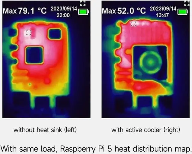 Ensure the stable operation of Raspberry Pi 5: The efficient radiator can ensure that Pi 5 can maintain an appropriate operating temperature under high power consumption and avoid high temperature frequency drop.
