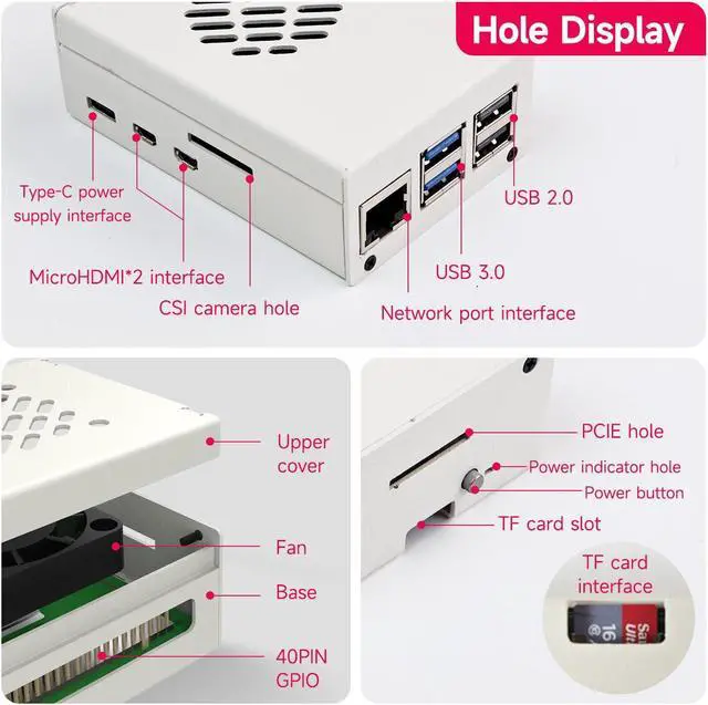 The metal shell itself dissipates heat quickly, and the package is also equipped with a PWM speed-adjustable fan. The heat dissipation performance is better than the official shell, ensuring that the high-performance Raspberry Pi 5 can operate at normal temperatures.