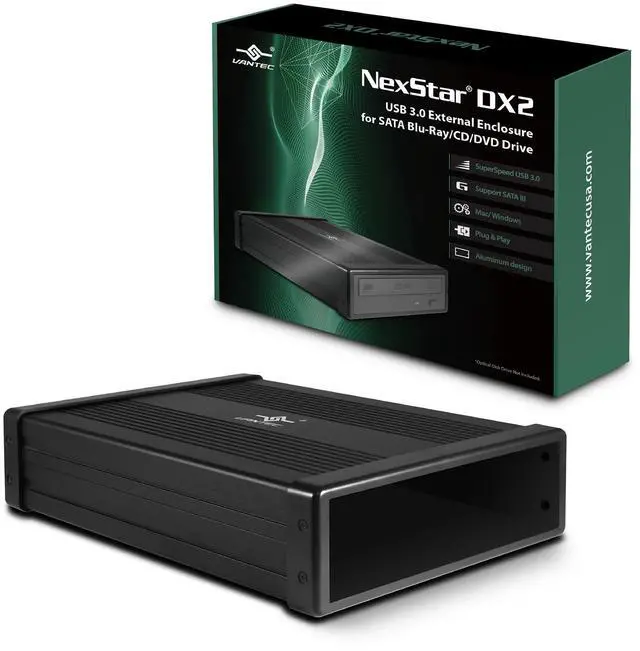 NexStar DX2 is the second generation of the popular DX Optical Enclosure. Like DX, this DX2 is designed to be solidly built enclosure to house a 5.25" Desktop Optical drive and convert into an external enclosure. Your internal 5.25 optical drive now becomes a portable USB 3.0 enclosure that fits and moves with your desktops or laptops. This enclosure supports faster read/write operation requires of the optical drive like Blu-Ray drive, CD and DVD. The aluminum case keeps the device cool and operating at optimum conditions. This second generation NexStar DX2 external 5.25" enclosure is the smart way to optimize and share your optical drive with all your system.