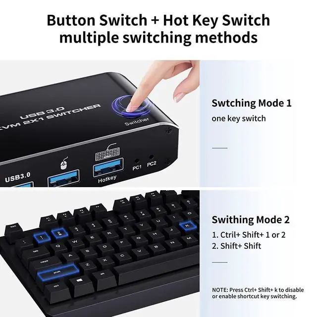 KVM HDMI Switch 1 Monitor 2 Computers Support USB 3.0 8K@60Hz Displayport for 2PC Shares 1 Set Mouse Keyboard and Monitor Hotkey HDMI 2.1 in/Out
