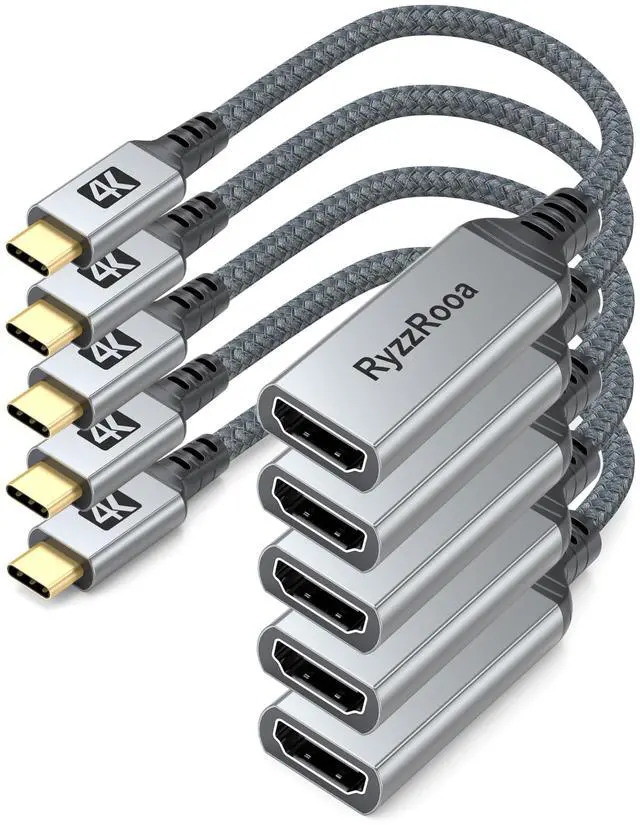 RyzzRooa USB C to HDMI Adapter 5 Pack, 4K USB Type-C to HDMI Adapter [Thunderbolt 3/4 Compatible] for iPhone 16/15 Series, MacBook Pro/Air, iPadPro, S24/23 Series, Dell XPS, Surface and More