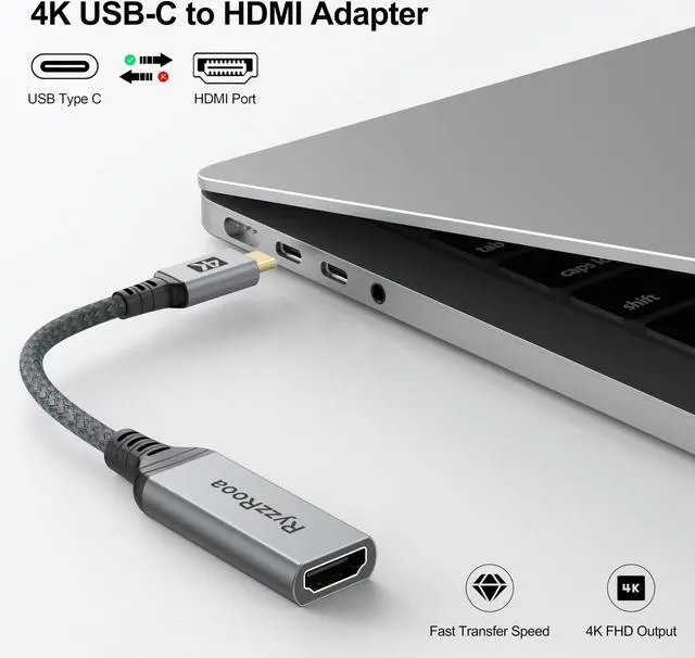 High quality and durable designOur USB Type-C to HDMI adapter is designed with aluminum shell that is highly heat insulated and heat dissipation. The nylon braided cord makes it extremely durable High quality and durable design to ensures long-term use. Plated USBC connectors resist corrosion and abrasion for improved signaling performance.