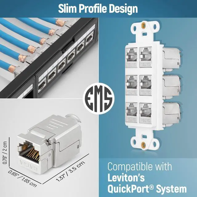 Fits Most Plates & Patch Panels - Featuring a slim profile that makes it ideal for interfaces with tight spaces. These keystone jacks fit standard ethernet wall plates and blank patch panels.