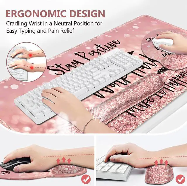 Feature: Ergonomic shape and just the right height keep your wrist in a natural position rather than a twisted angle. Non-slip textured bottom with the natural rubber material to prevent gliding or unnecessary movement. Memory foam structure, comfortable lightweight, and durable, with no deformation. Adopt soft and breathable materials to provide lasting support for your wrist. The sizes of keyboard wrist pad and mouse wrist pad fits most computers or notebooks. It is also helpful to avoid joint and wrist problems.