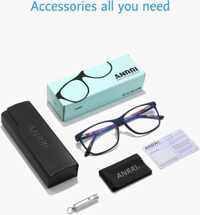 ANRRI Blue Light Blocking Glasses Anti Eyestrain Trendy Blue Eyewear Frame with Tortoise Print Interior for Women