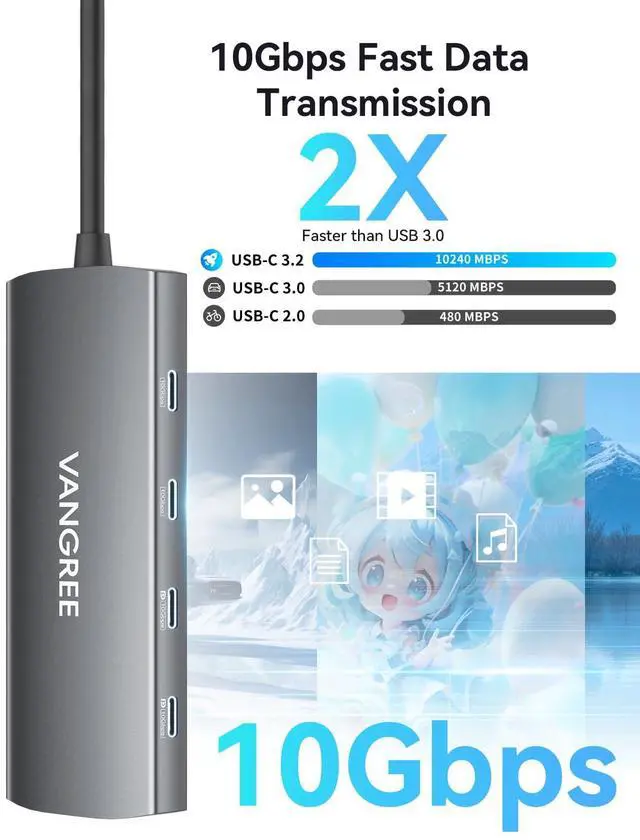 10Gbps USB-C & USB-A 3.2 DATA TRANSFER: This USB C 3.2 Hub can synchronize data through 2*USB-C & 2*USB-A 3.2 ports while 10Gbps data bandwidth, which can transfer and backup data for your external devices easily and efficiently.