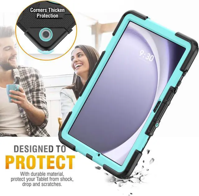 Drop Proof & Protector This Case for Galaxy Tab A9 Plus is Designed to Protect ! With durable anti shock material, soft silicone, hard shell cover and built-in screen protector (package contains 2 front covers, one with screen protector and one without). Full body sturdy Tab A9 Plus case can keep your Tablet safe from shock, drop, scratch or accidental damages in daily use.