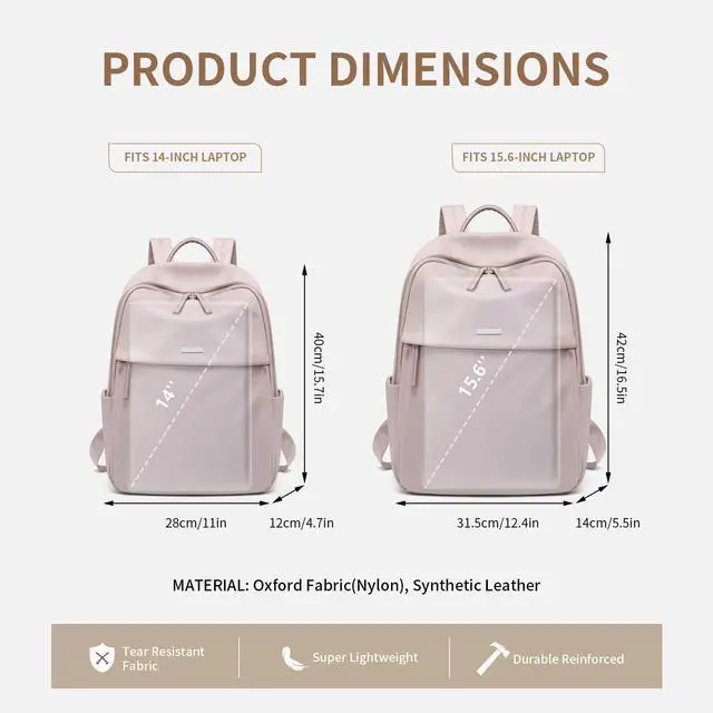 Size & Color- The women's backpack adopt stylish designs and different color choices(Soft Pink, Black). Size: 16.5" x 12.4" x 5.5"/42 x 31.5 x 14cm.