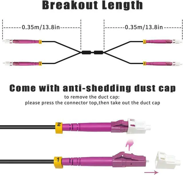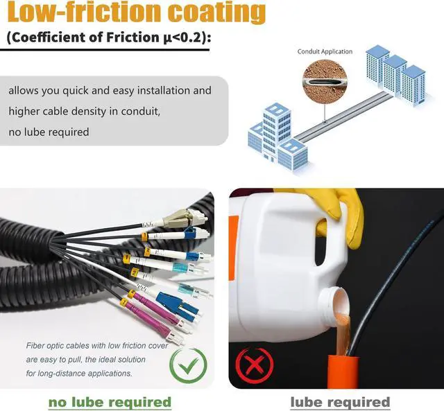 2-Strand OM4 Multimode Fiber Optic Cord with Low Friction Flame Retardant LSZH Jacket (Coefficient of Friction <0.2), which allows you quick and easy installation and higher cable density in conduit.