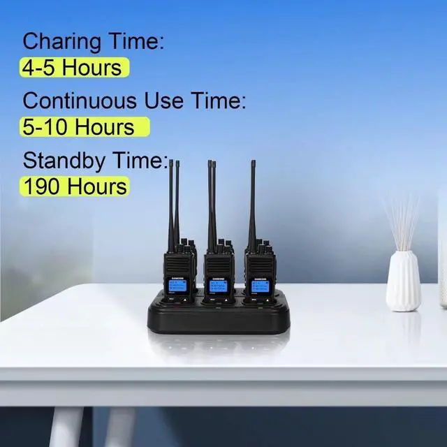 [Compatible Models] ONLY WORK for SAMCOM FPCN30A Two Way Radios and Battery. The package comes with 1 x 6-way charger, 1 x removable AC adapter, NO FPCN30A Walkie Talkie