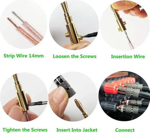 Widely Application : The Goaycer 4mm Banana Plugs Widely Use for Speaker Wire /Wall Plate /Home Theater / Audio/Video Receiver /Amplifiers and Sound Systems, can be used for both home and professional audio setups.