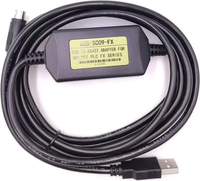 This cable is for transferring program/data between computer and Mitsubishi FX and Taiwan Shihlin AX series. Compatible with Mitsubishi FX PLCs with MD8F circle outlet, like FX2N/FX1N/FX0/FX0N/FX0S/FX1S/FX3U/FX3GA, for USB-SC09-FX Replacement.