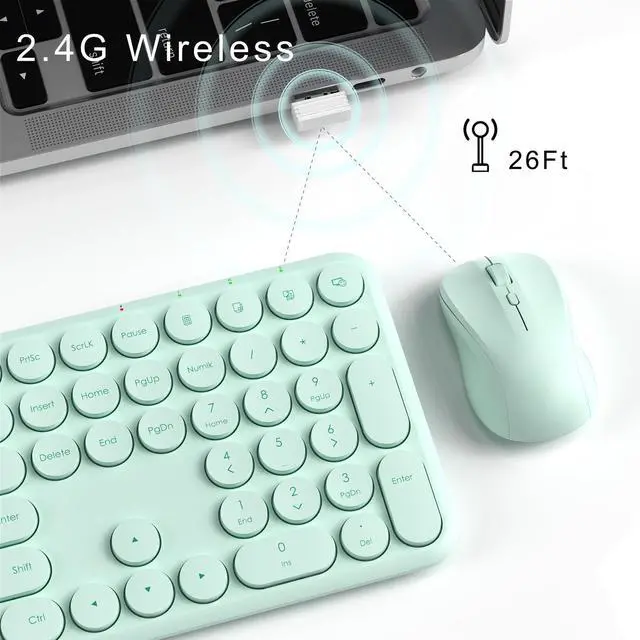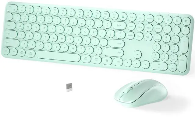 Wireless Keyboard and Mouse Set MPTOG Full-Sized 110Pcs Slim Round Key Design, Quiet Typing, Adjustable DPI Ergonomic Mouse, Wireless Combo for PC, Mac, Laptop, Tablets (Mint Green)