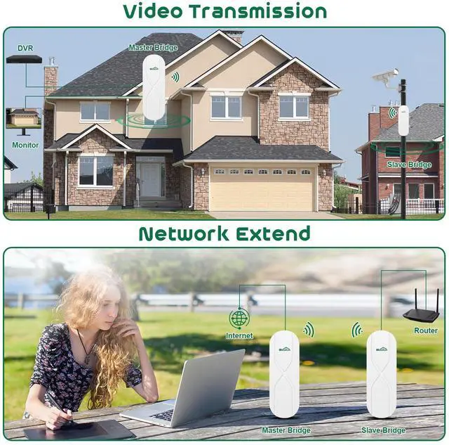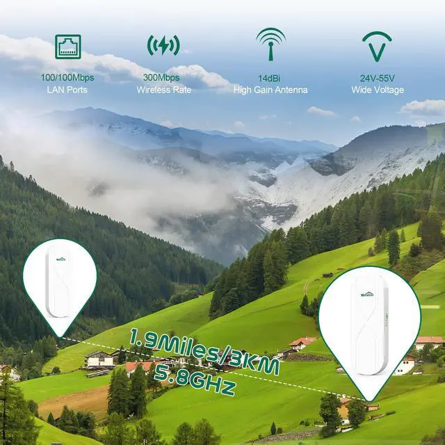 3KM Transmission DistanceThe wireless bridge adopts high-power circuit design, built-in 14dBi high-gain directional antenna, strong signal strength, and transmission distance up to 3KM (1.9 miles), which can be easily used in factories, farms, warehouses, parking lots, stores and other places. This point to point wireless bridge adopts Qualcomm engineering-grade chips from the United States, with stable and reliable performance, and can be well applied to PTP, PTMP and other working modes.